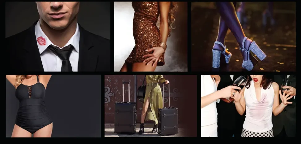 Images describing a fun and slightly chaotic trip to Las Vegas! Using some activities and items that might reflect that experience visually.